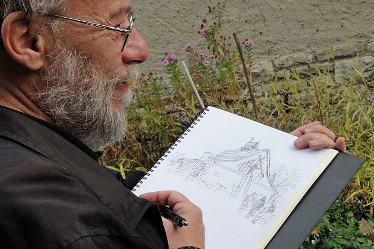 Sie können den handsignierten Abzug der Grafik des bekannten Erfurter Stadtplaners und Künstlers Jürger Pretzsch über die Kapelle und ihren Architekten erwerben.