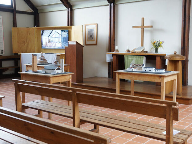Hier finden Sie Näheres zur Baugeschichte der Kapelle und einen Rückblick auf mittlerweile über 70 Jahre bewegte Vergangenheit. Zudem erfahren Sie etwas zum bekannten Architekten Prof. Otto Bartning, seinem Notkirchenprogramm nach dem 2. Weltkrieg und über die in diesem Rahmen geschaffenen Diasporakapellen.