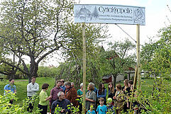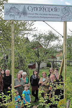 Am Ostermontag fand im Garten der Cyriakkapelle im Erfurter Gebreite das traditionelle Ostereiersuchen mit Kaffee und Kuchen statt. Zugleich wurde das neue aus Spenden finanzierte Hinweisschild für die etwas versteckt liegende Kapelle eingeweiht. Dieses ist bereits von der ega-Haltestelle aus zu sehen und wurde vom Erfurter Grafiker und Stadtplaner Jürgen Pretzsch gestaltet.