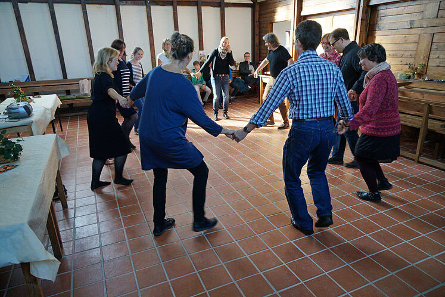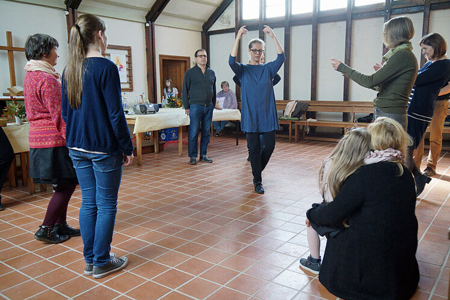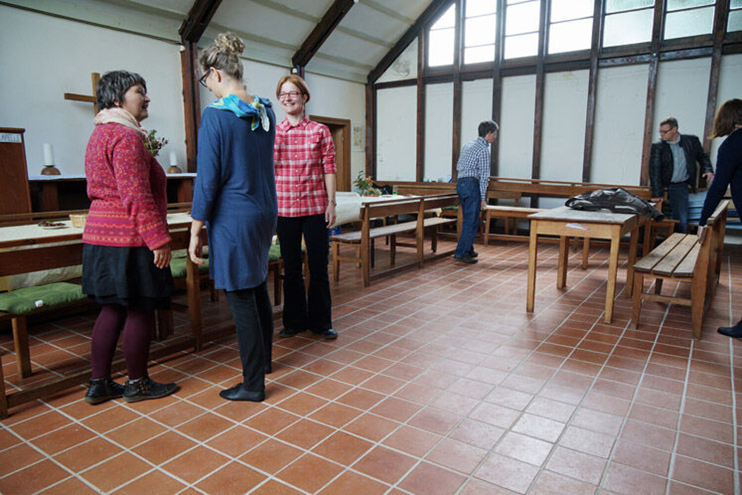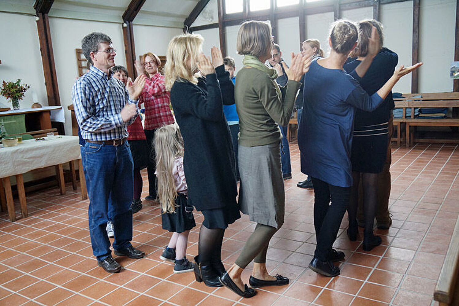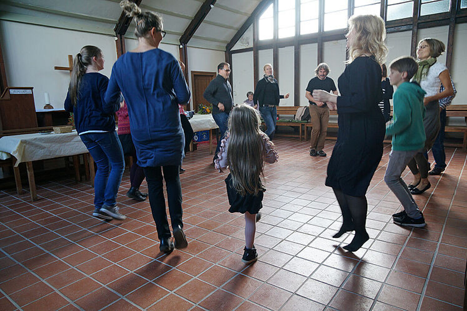 Und dann, mit der Zeit, werden die Abläufe auch flotter und schmissiger. Temperamentvoll nimmt die Gemeinde den neuen Kapellenboden in Besitz!