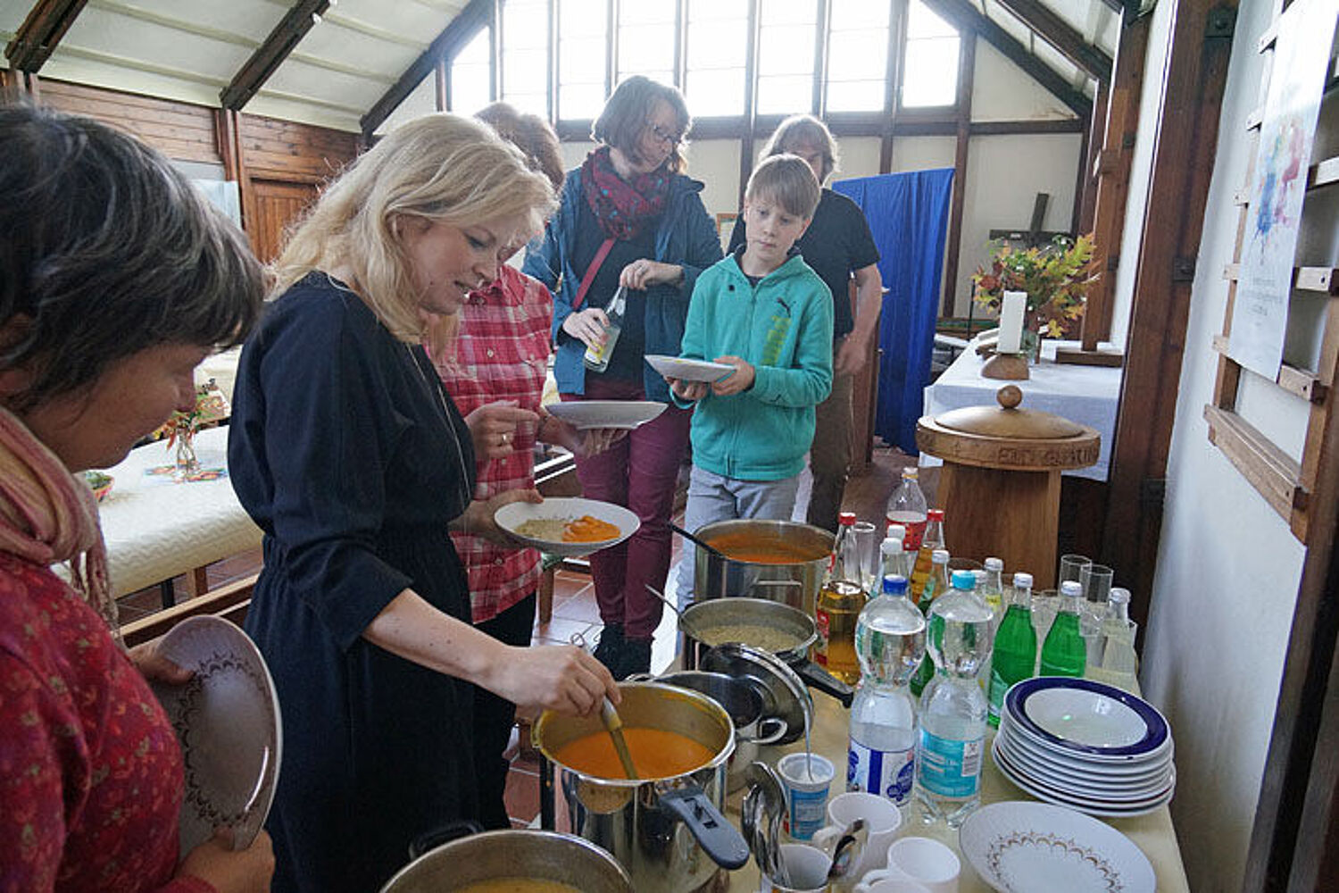 Andrang am Suppenbüfett