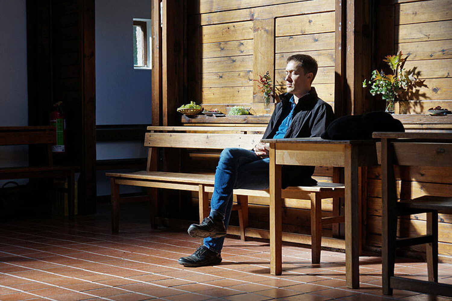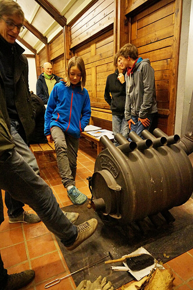 In der Ofenecke ist es natürlich am wärmsten. (Die Musiker in der diagonal entgegengesetzten Ecke haben es am meisten gespürt!)