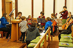 Ein beträchtliches Orchester - gleichzeitig Chor! - hat sich wieder zusammengefunden.