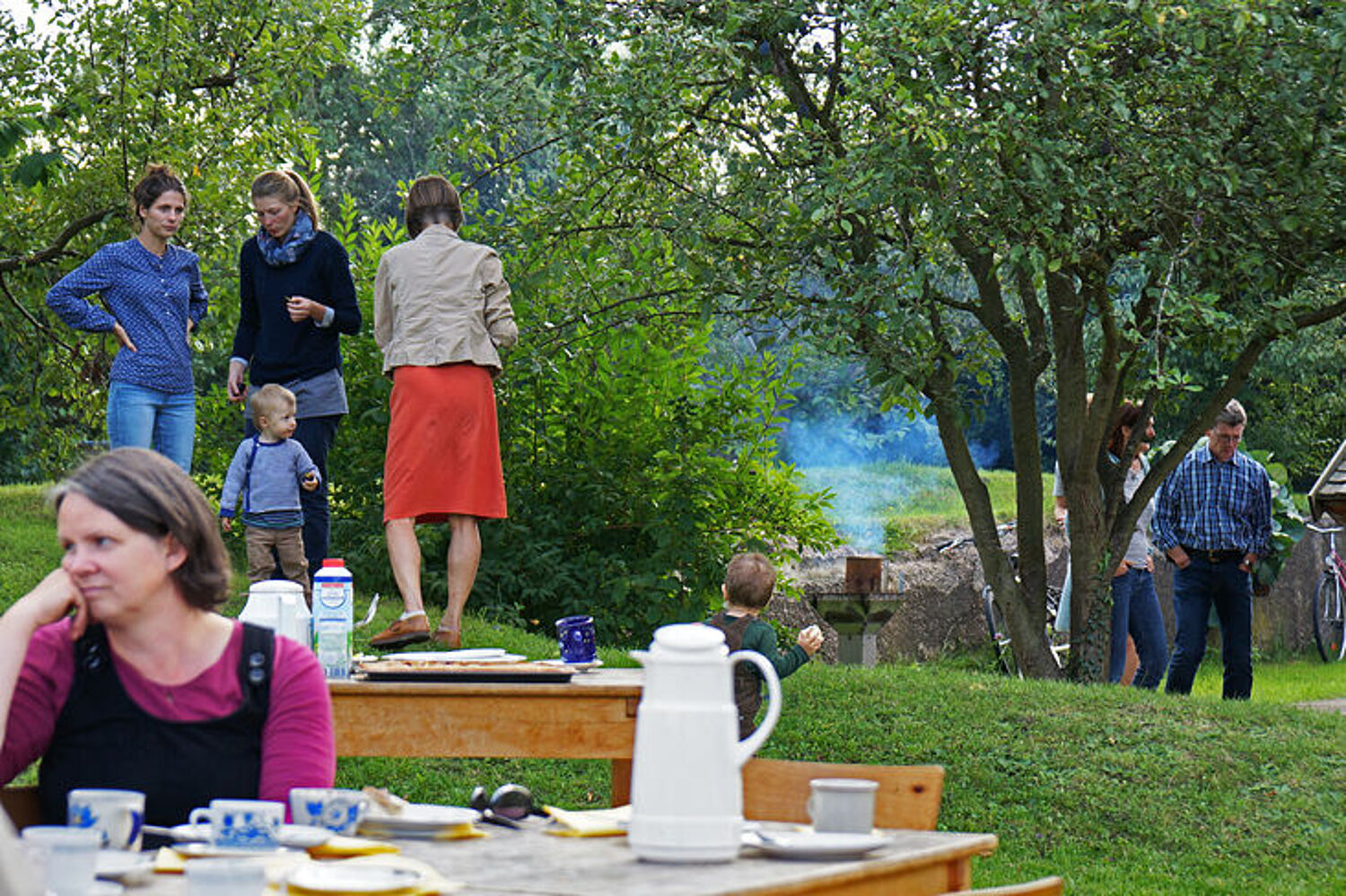 Gespräche an der Kaffeetafel und überall auf der Wiese