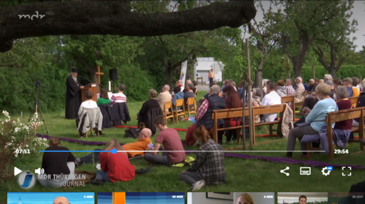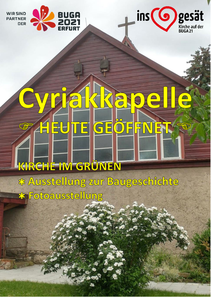 Unser Cyriak-Jahr war von der BUGA geprägt, aber auch von den Einschränkungen der Pandemie, was vieles erschwerte. Das traditionelle Eiersuchen am Ostermontag fiel aus, dafür feierte der Kirchenkreis seinen bunten ökumenischen BUGA-Pfingstmontags-Gottesdienst im Cyriak-Garten. Der Vokalkreis und die Erfurter Turmbläser umrahmten die Andacht musikalisch.