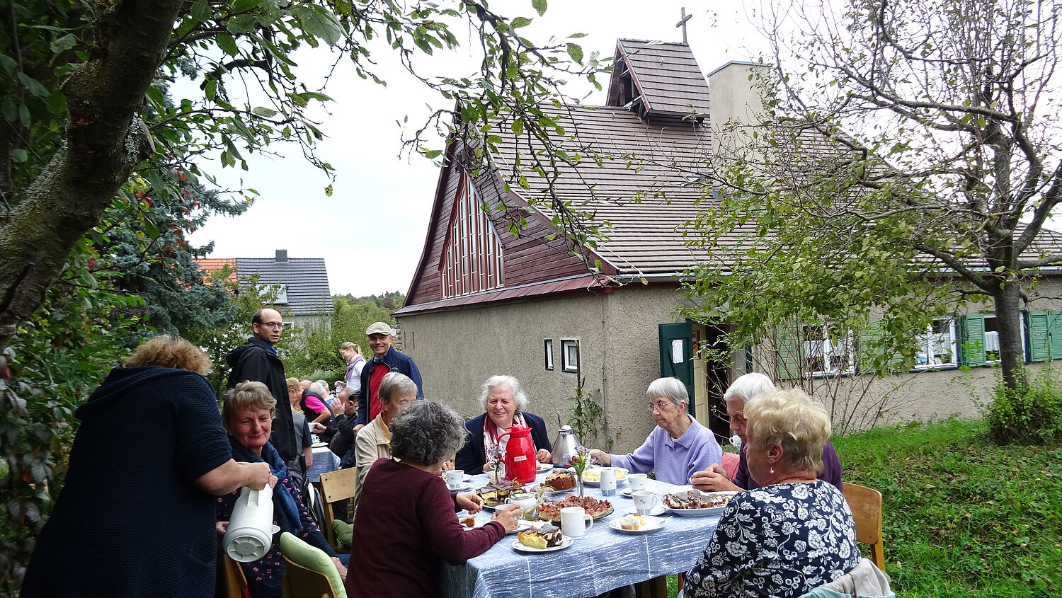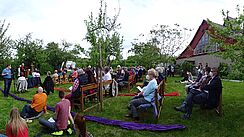 Zum mittlerweile 22. Cyriakfest konnten wir an Erntedank zahlreiche Gäste begrüßen. Das Fest begann mit einer Andacht. Im Anschluss saßen wir bei herrlichem Herbstwetter im Garten bei Kaffee, Kuchen und Gesprächen und die Kinder nahmen das neue Schaukelgerüst in Beschlag.